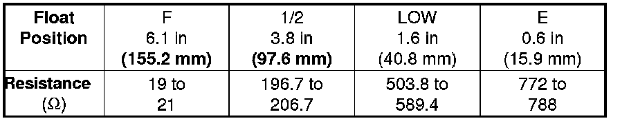 If you do not get the following readings, replace the fuel gauge sending unit Fuel Pump/Fuel Gauge Sending Unit Replacement.