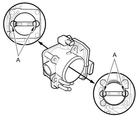 - To avoid removing the molybdenum coating, do not clean the bearing area of the throttle shaft (A).