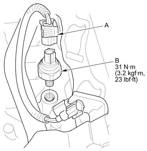 4. Remove the knock sensor (B).