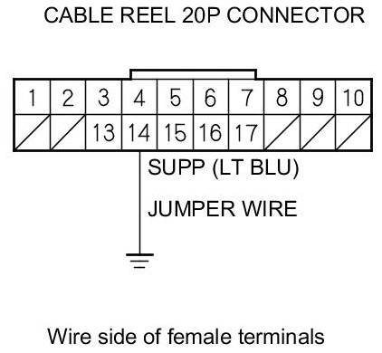 16. Connect cable reel 20P connector terminal No. 14 to body ground with a jumper wire.