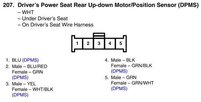 Driver's Power Seat Rear Up-Down Motor/Position Sensor Connector View (DPMS)
