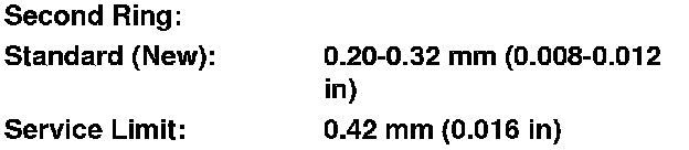 The top and second ring grooves are 1.2 mm (0.047 in) wide. The oil ring groove is 2.0 mm (0.079 in) wide.