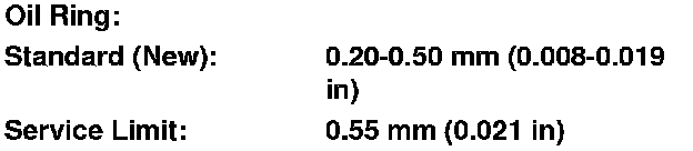 The top ring groove is 1.2 mm (0.047 in) wide. The second ring groove is 1.0 mm (0.039 in) wide. The oil ring groove is 2.0 mm (0.079 in) wide. File down a blade if necessary.