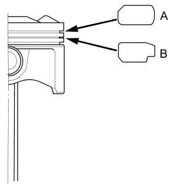 5. Measure the piston ring end-gap (B) with a feeler gauge: