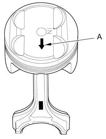 4. Position the mark (A) to face the cam chain side of the engine block.
