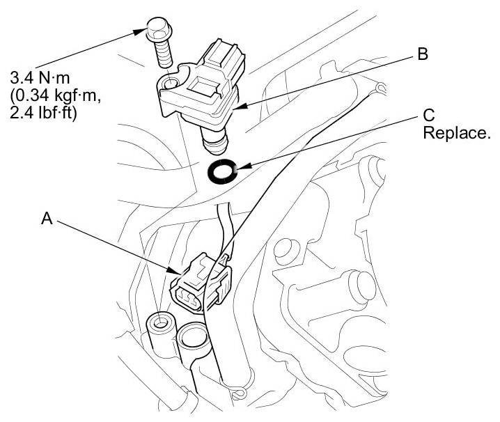 Install the parts in the reverse order of removal with a new O-ring (C).