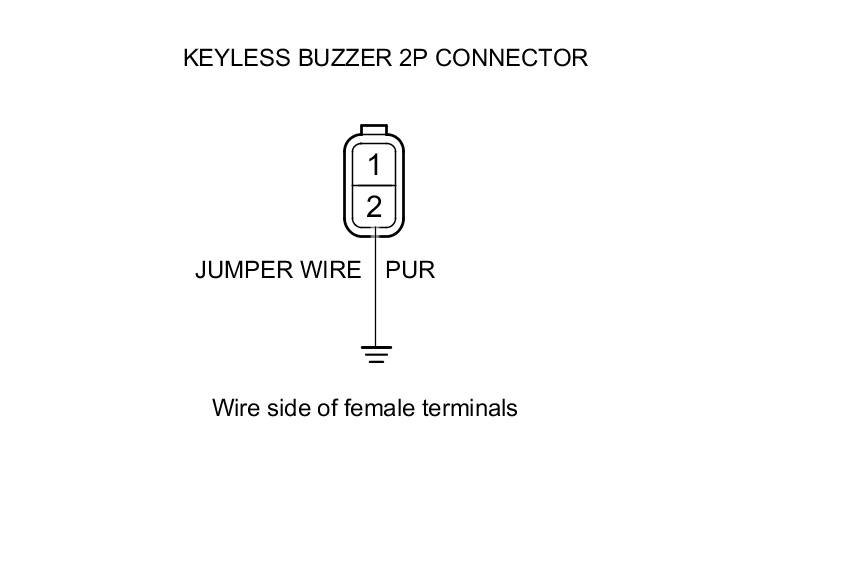 8. Reconnect keyless buzzer 2P connector terminal No. 2 to body ground with a jumper wire.