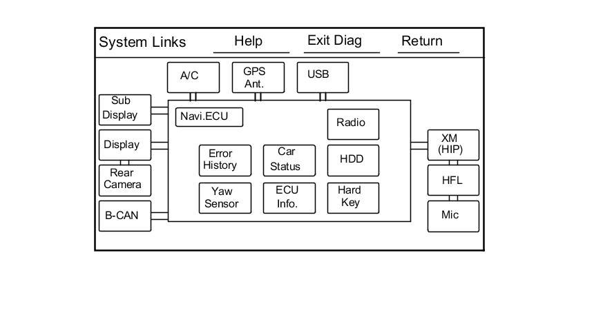 - At the select diagnosis items screen, select Detail Information & Setting, select Unit Check, then ECU Info. The system runs a brief diagnosis, then the audio-navigation unit serial number is displayed at the bottom of the screen.