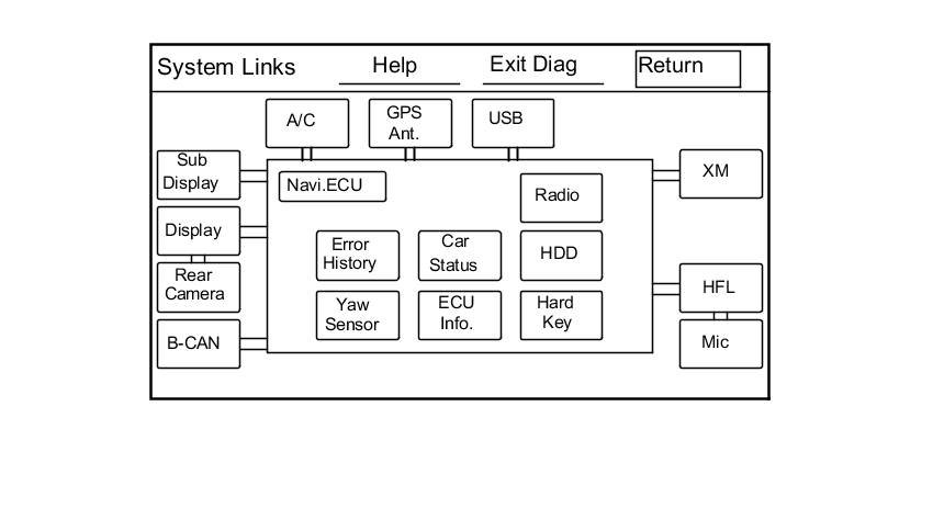 4. When the audio-navigation unit has hard codes, the Error History icon appears yellow when the Self-Diagnosis Mode (System Links) screen is displayed. When no hard errors are stored, the icon appears gray. To view the errors with their navigation DTC, select the Error History icon.