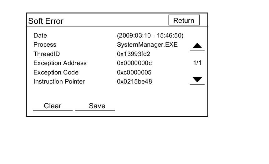 - Select Clear to delete the error history. The Save feature is for factory use only.