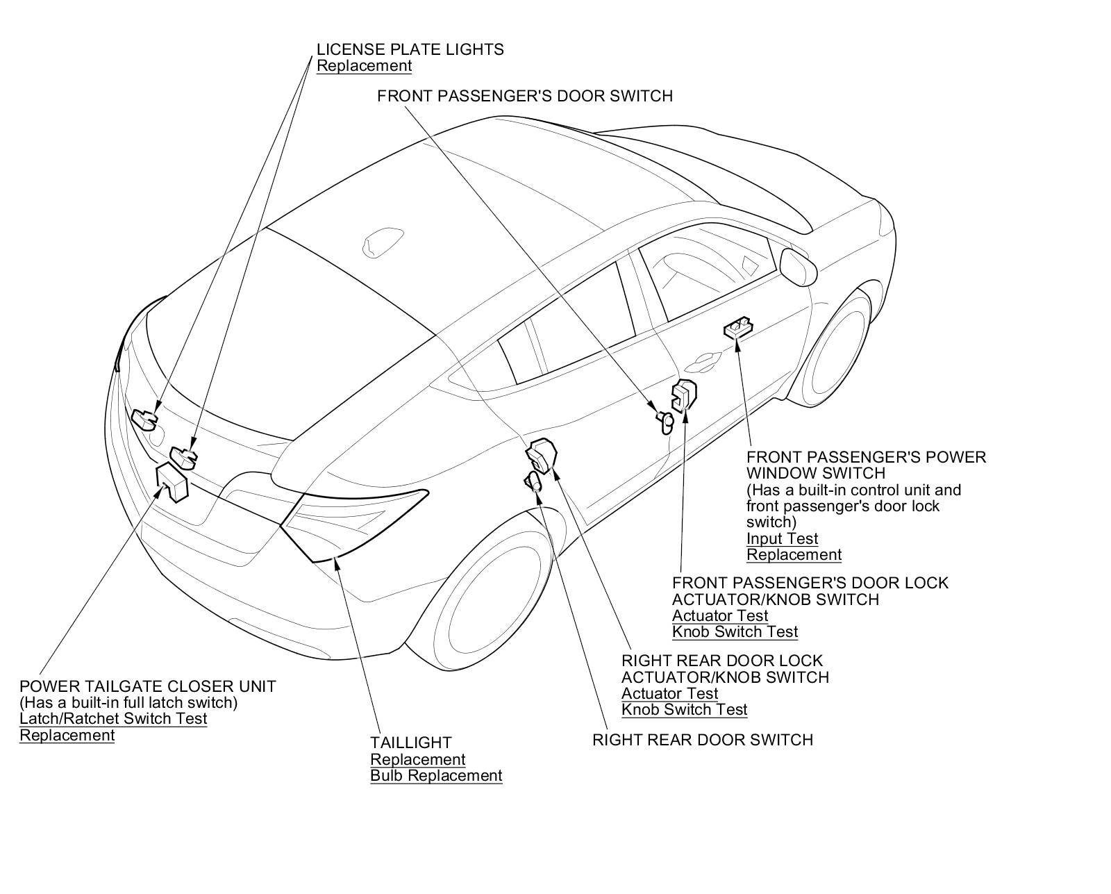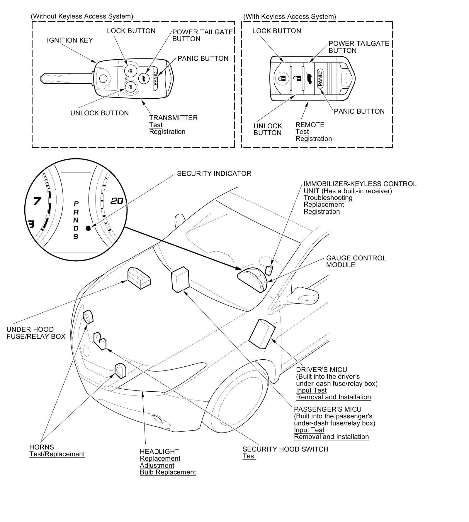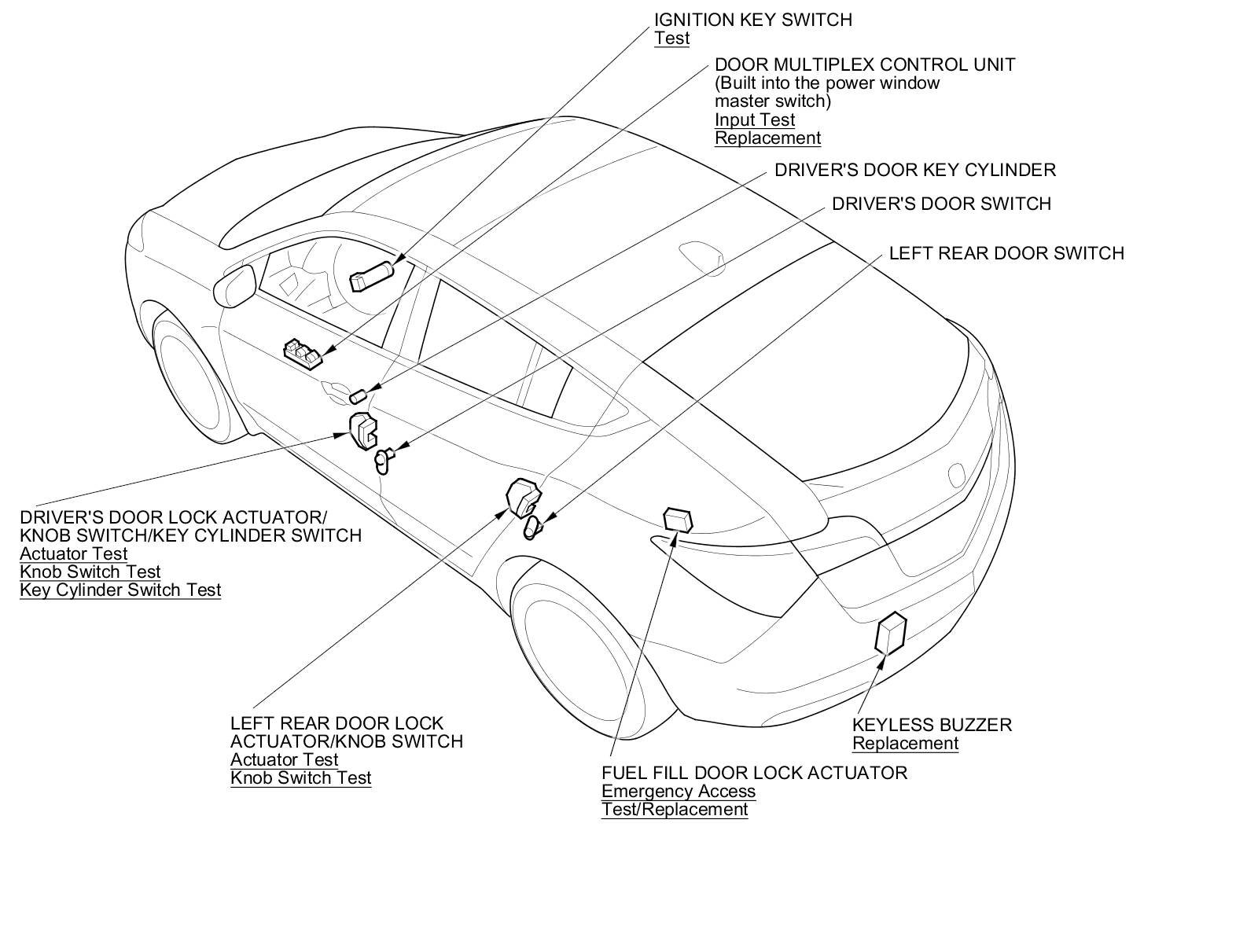 Keyless/Power Door Locks/Security System Component Location Index
