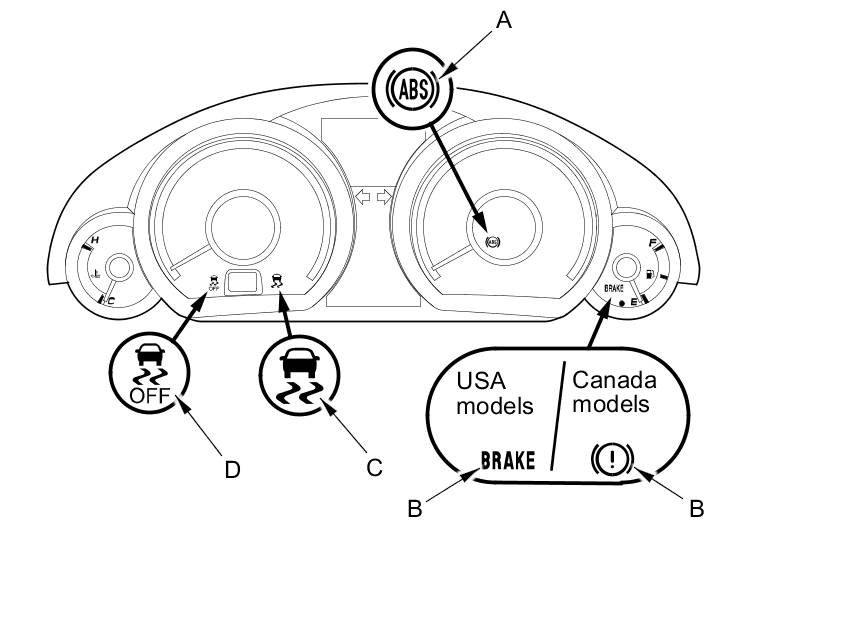 When the system detects a problem, it will turn the appropriate indicators on. Depending on the failure, the VSA modulator-control unit determines which indicators are turned on.