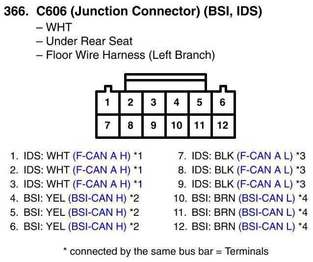 View 366 - C606 (Junction Connector) Connector View (BSI, IDS)
