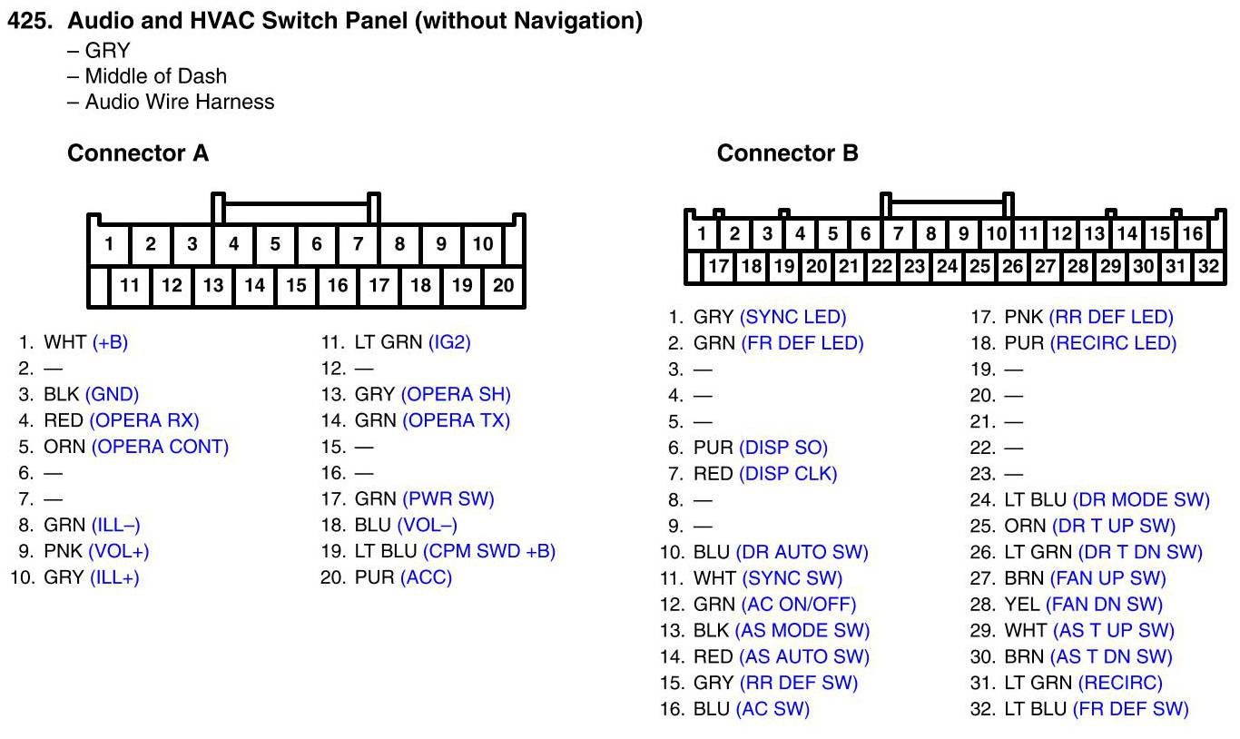 Audio and HVAC Switch Panel Connector View (Without Navigation)