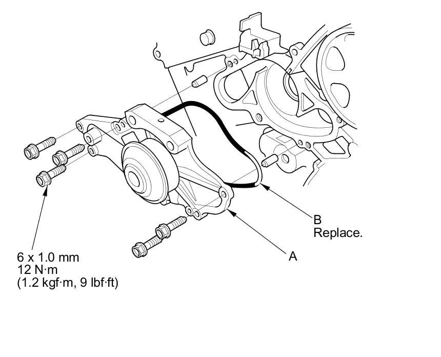 6. Install the water pump with a new O-ring (B).