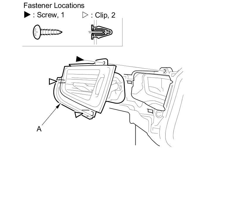 2. Pry up the bottom edge of the side vent (A) to detach the clips, then remove the side vent.