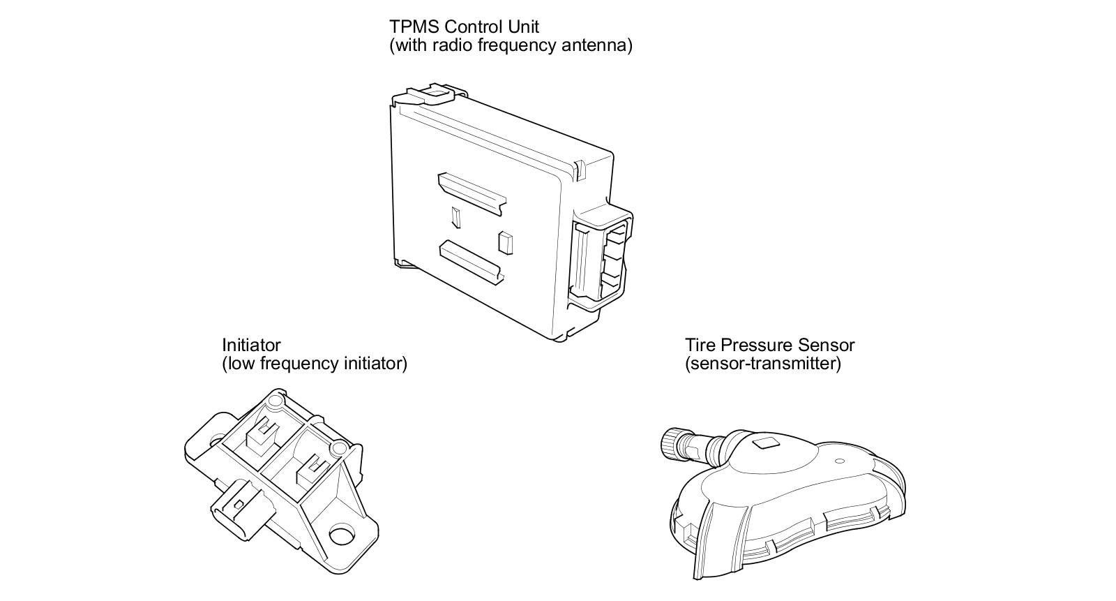 - A tire pressure sensor ID can be memorized manually or automatically. Each initiator is hardwired to the TPMS control unit. Every time the ignition is turned to ON (II), or the engine start/stop button is pressed to select the ON mode, the TPMS control unit asks each initiator to wake up the appropriate tire pressure sensor. The transmitters in the sensors then transmit the sensor IDs, and the TPMS control unit receives, and memorizes them. The TPMS control unit then knows which sensor ID belongs to each tire location. This recurring sensor ID confirmation prevents any confusion in the system as a result of normal tire rotation.