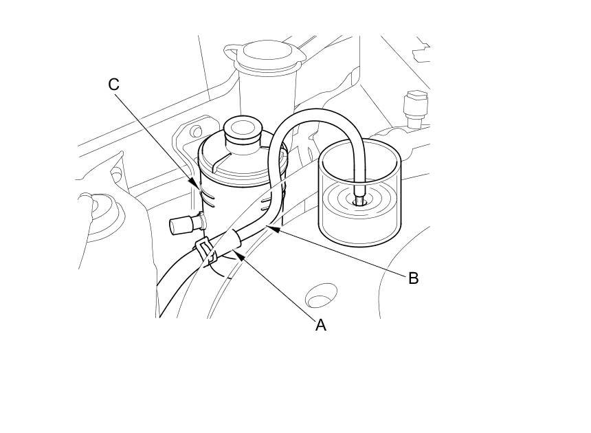 NOTE: Stop the engine immediately once the fluid stops running out of the hose to prevent pump damage.