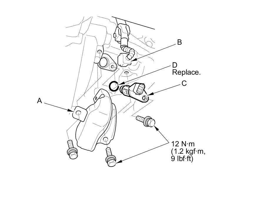 5. Install the parts in the reverse order of removal with a new O-ring (D).