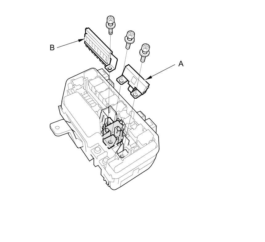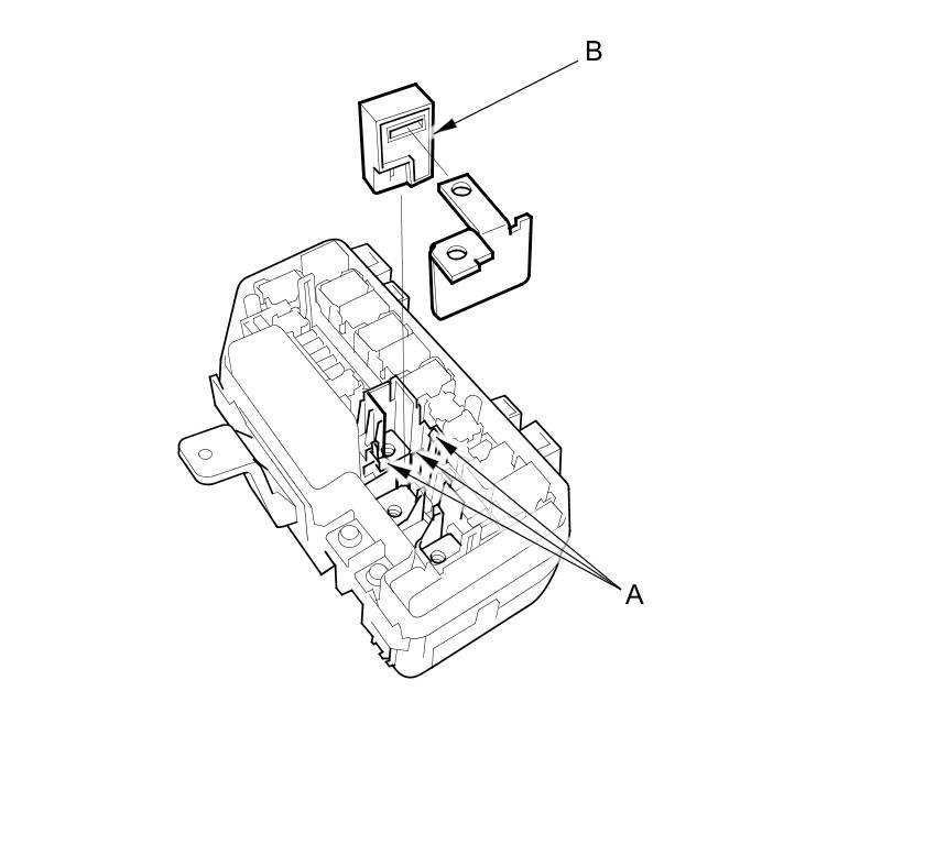 1. Remove the under-hood fuse/relay box Under-Hood Fuse/Relay Box Removal and Installation.