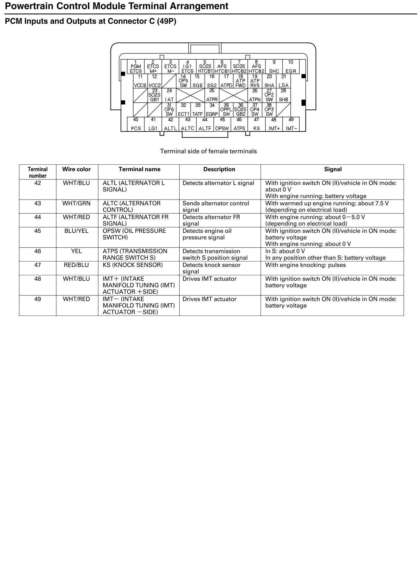 PCM Inputs And Outputs At Connector C
