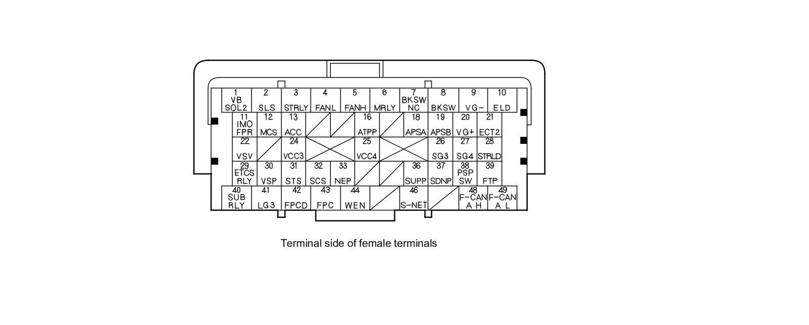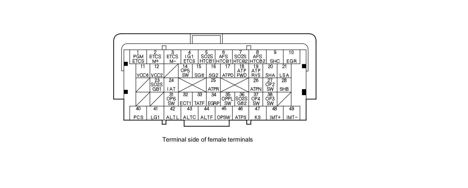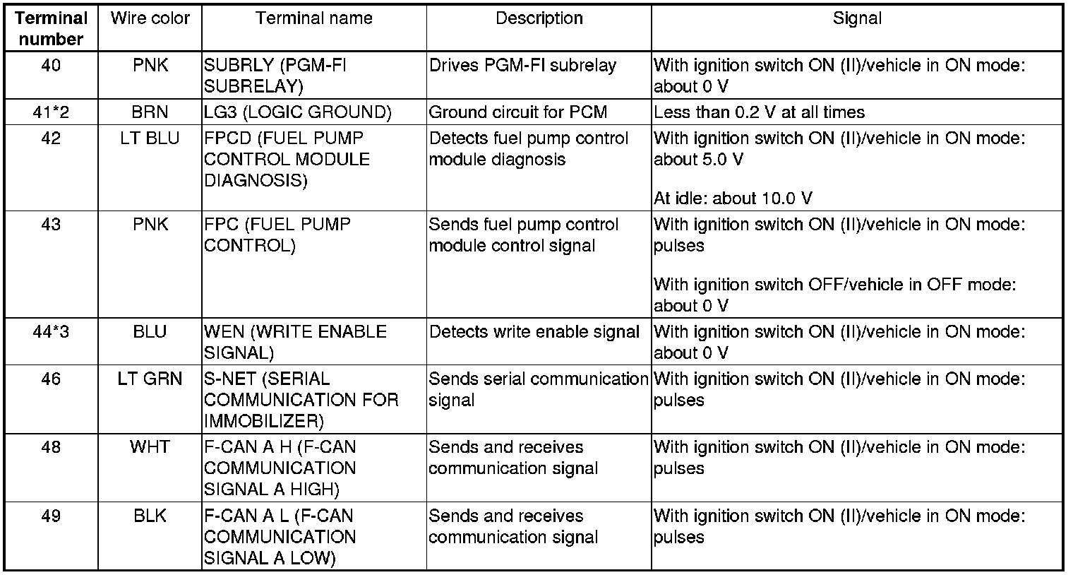 PCM Inputs and Outputs at PCM Connector A (square) (49P)
