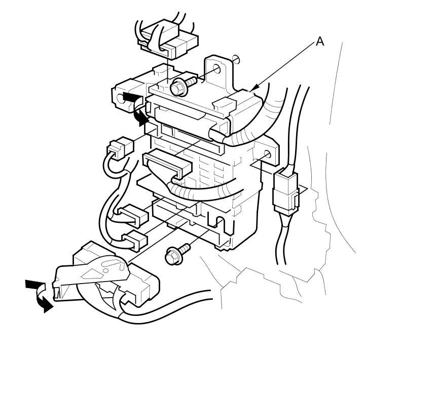 3. Disconnect the connectors from the passenger's under-dash fuse/relay box (A).