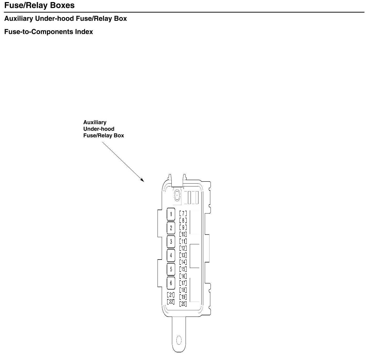 Auxiliary Under-Hood Fuse/Relay Box - Fuse-to-Components Index