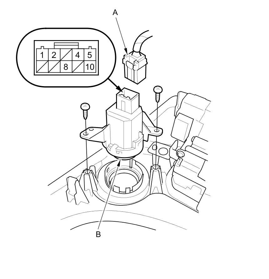 2. Disconnect the 10P connector (A) from the engine start/stop switch (B).