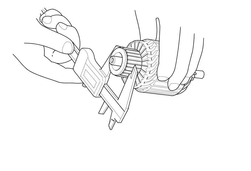 7. Check the commutator diameter with a digital caliper or dial type caliper. If the diameter is below the service limit, replace the armature.