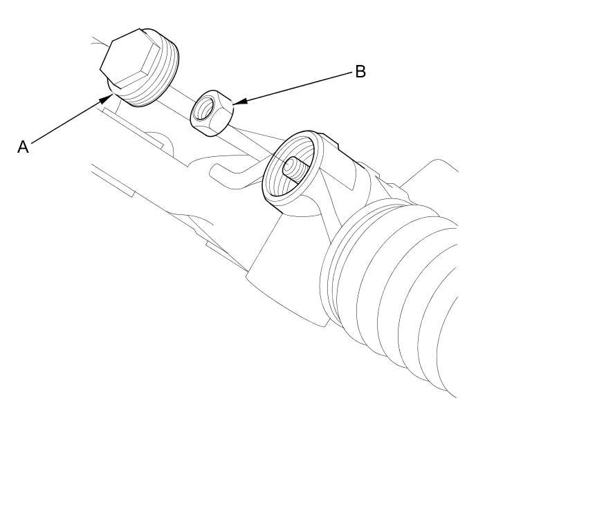10. Loosen the locknut (A), then remove the rack guide screw (B).