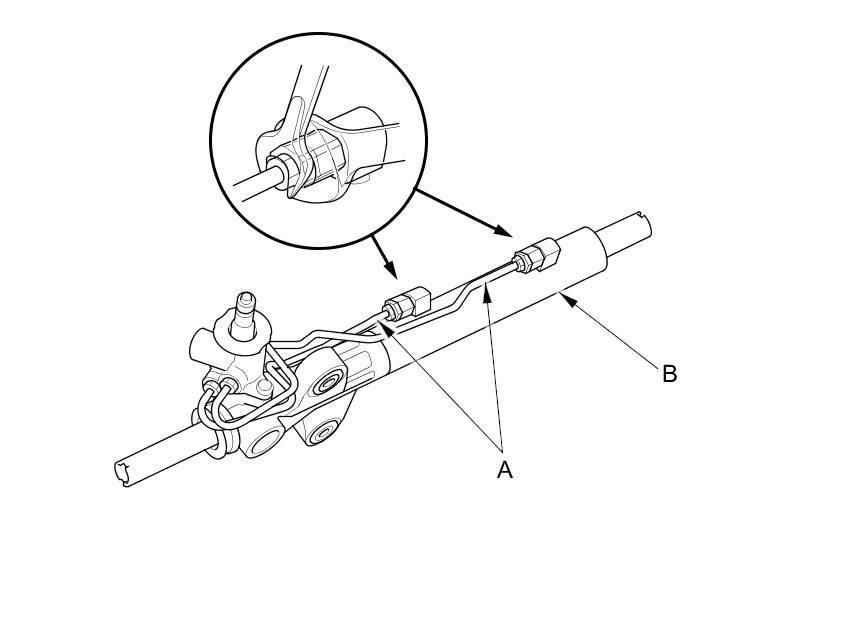 14. Drain the fluid from the cylinder fittings by slowly moving the steering rack back and forth.