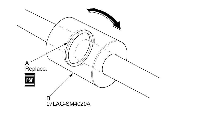 48. Press the new valve oil seal (A) into the valve housing with a hydraulic press, bearing driver attachment, and oil seal driver. Check that the pinion shaft/sleeve turns smoothly by hand after installing it.