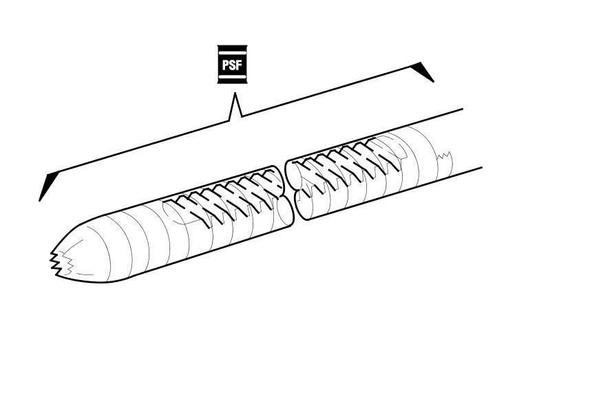 29. Coat the piston seal ring (A) and the inside of the piston seal ring sizing tool (B) with power steering fluid, then carefully slide the tool onto the rack and over the piston seal ring.