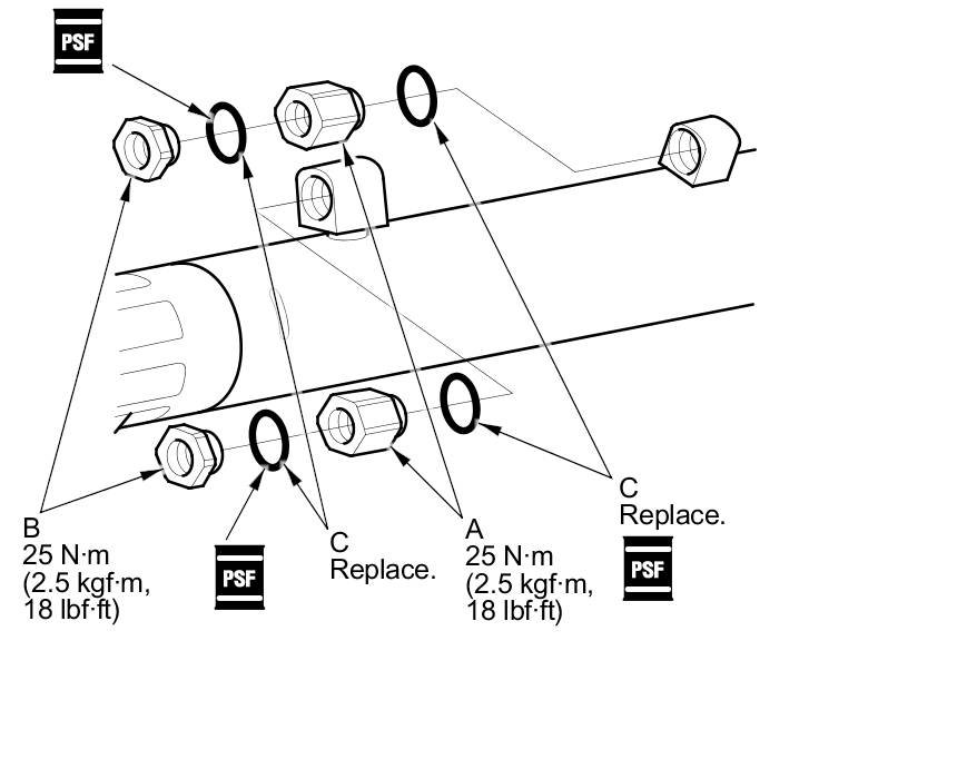 - Install the cylinder lines by tightening the flare nuts by hand first, then tighten the flare nuts to the specified torque.
