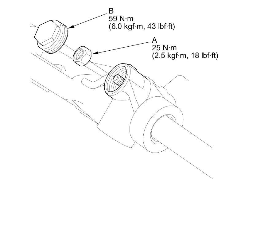 52. Install connector A and connector B to the steering gearbox, and tighten them to the specified torque.