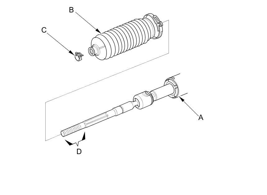 68. After installing the boot, wipe the grease off the threaded section (D) of the rack end.
