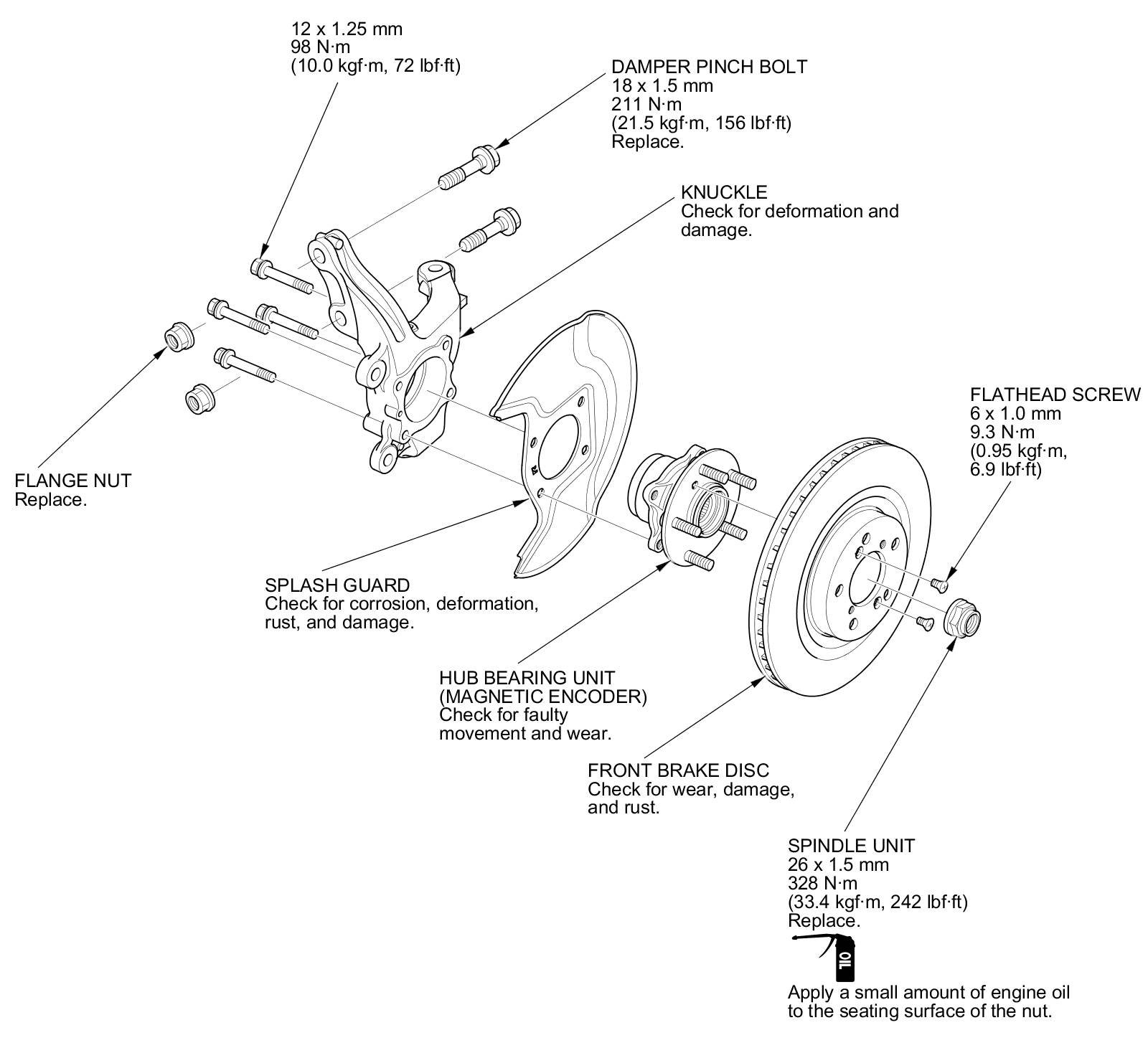 8. Check the hub bearing unit for damage and cracks.