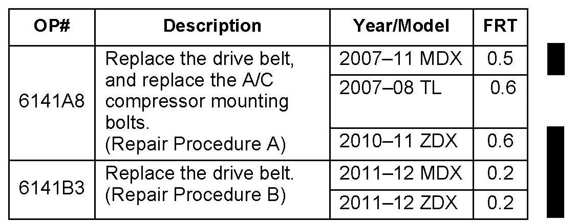 * ^ TL and ZDX - Replace three compressor mounting bolts.*