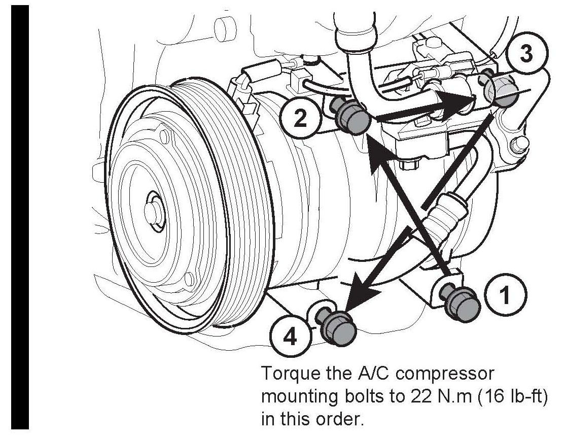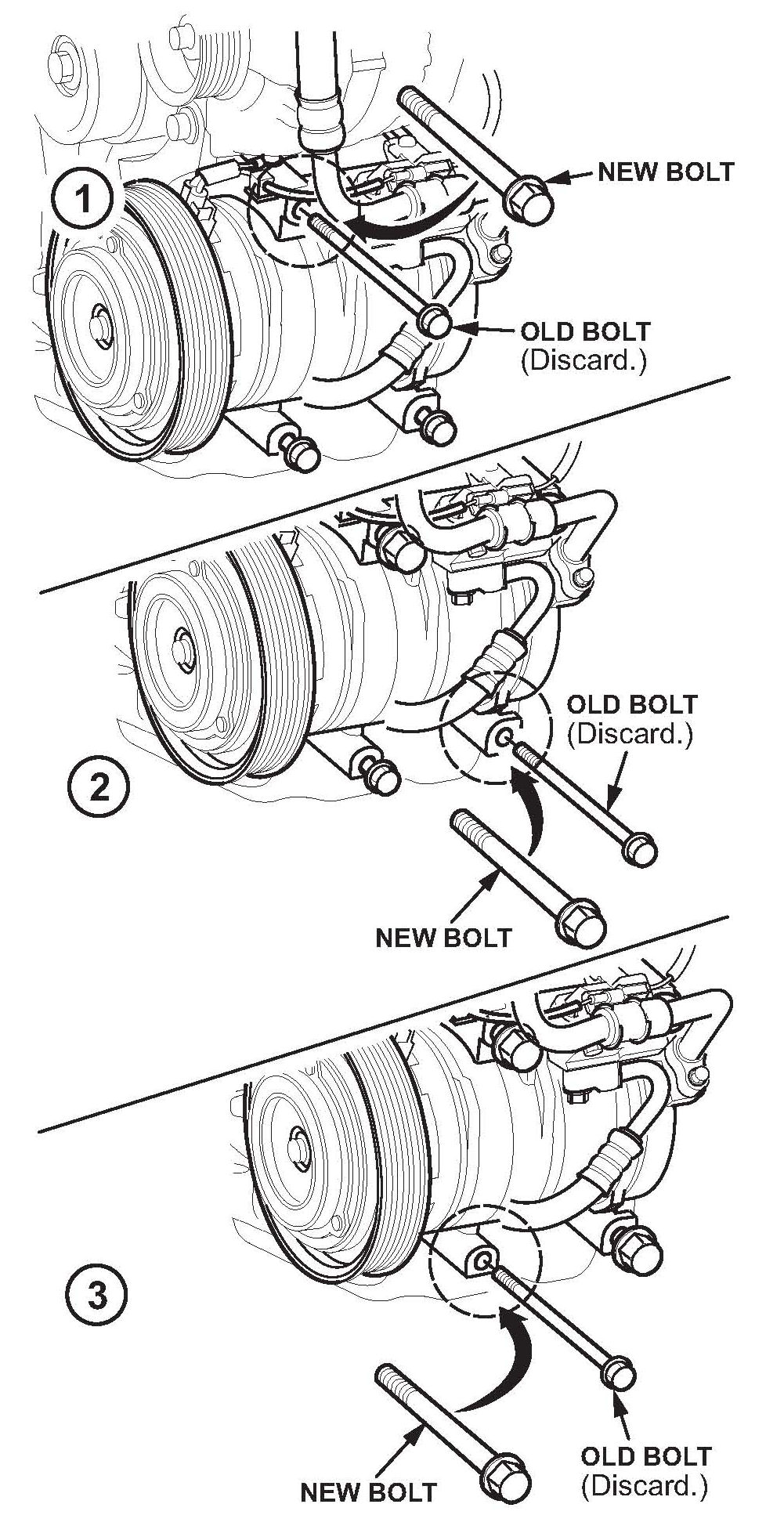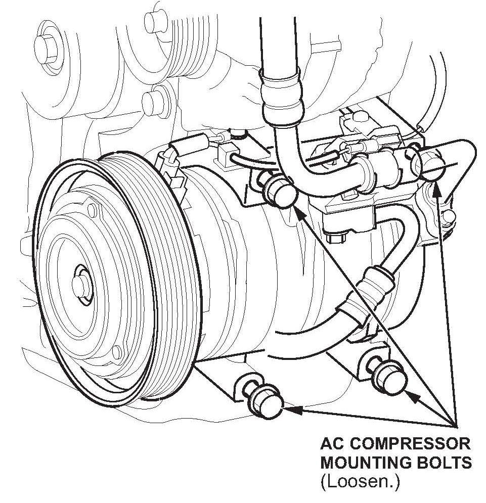 ^ MDX - Replace the four compressor mounting bolts as shown.