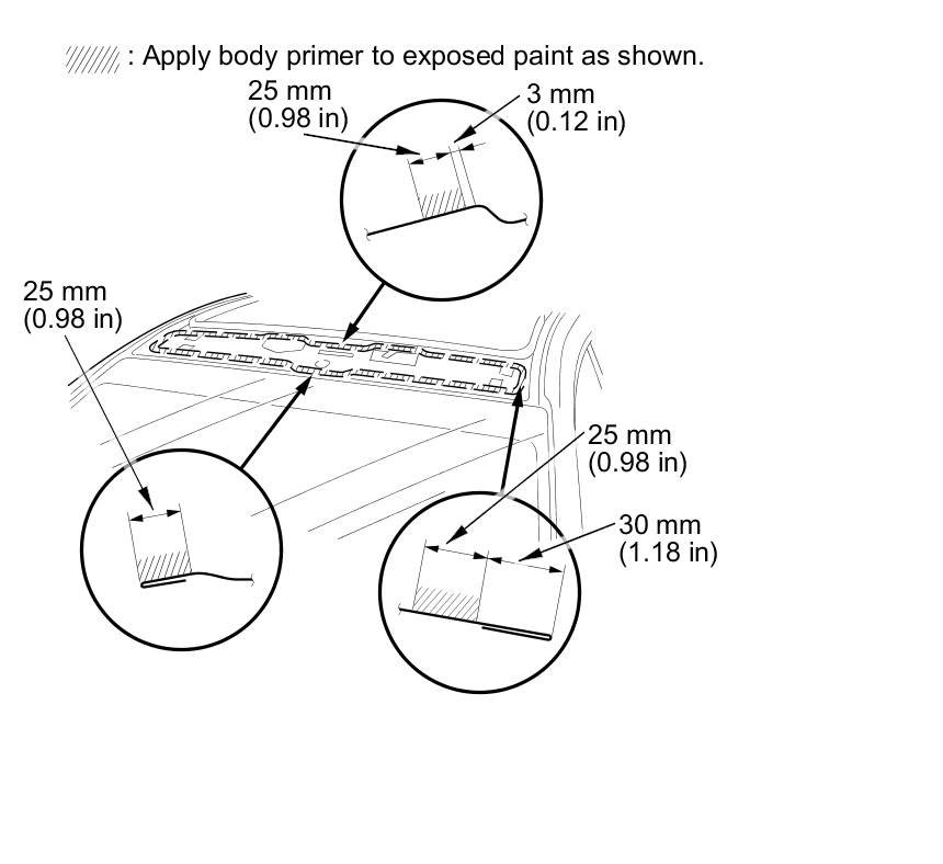 - Do not apply body primer to any remaining original adhesive on the flange.