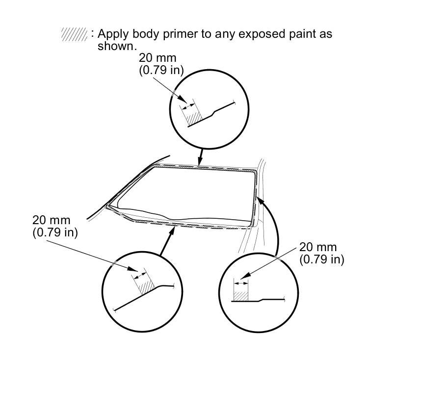 - Do not apply body primer to the windshield, and do not mix up the body and glass primer applicators.