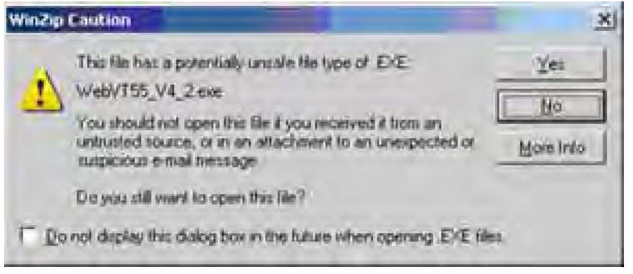 6. The WinZip Caution screen appears. Select Yes.
