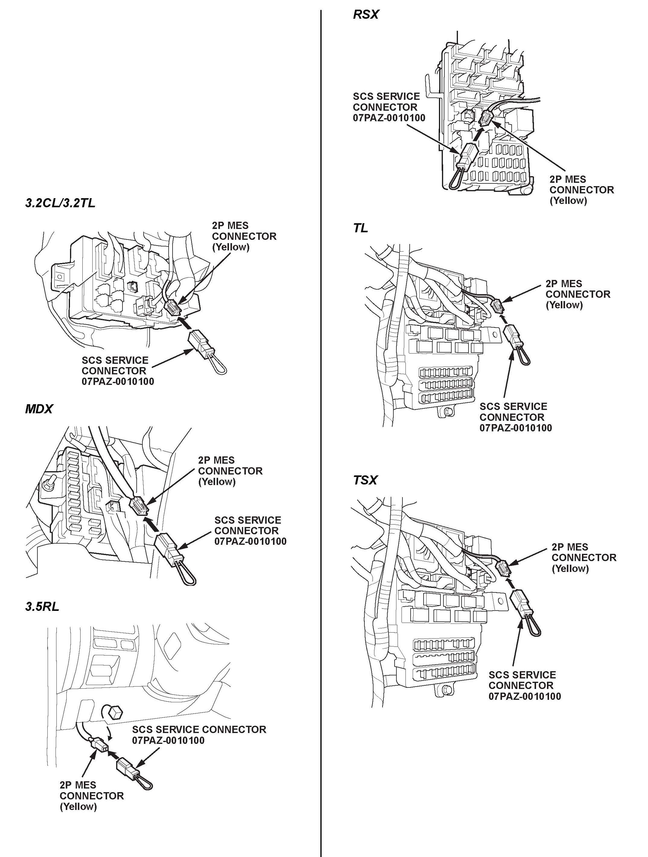 5. 3.5RL only: Plug the SCS service connector into the 2P service check connector. Do not use a jumper wire. Refer to page 24-88 of the 1996-01 3.5RL Service Manual for details. (In ISIS, use the keyword OPDS, and select Initializing the OPDS from the list.) Go to step 7.