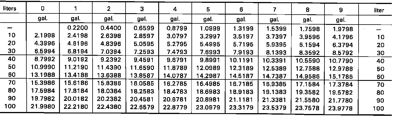 Fig. 11 Conversion Table, Liters To Imperial Gallons: