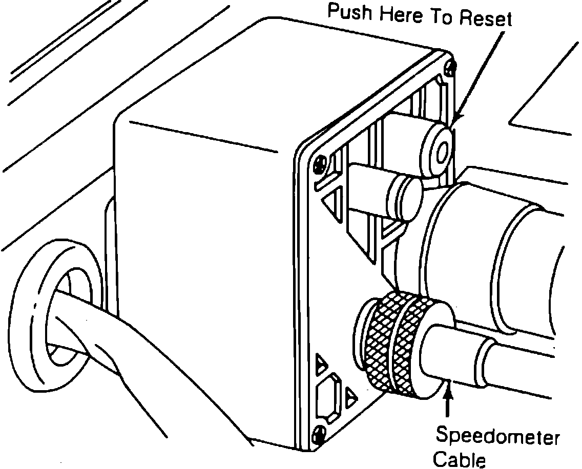To reset the mileage counter, trace the speedometer cable to the reset box and push the button marked "OXS." The reset mechanism should make an audible 'clunk', and the dash light should go out.