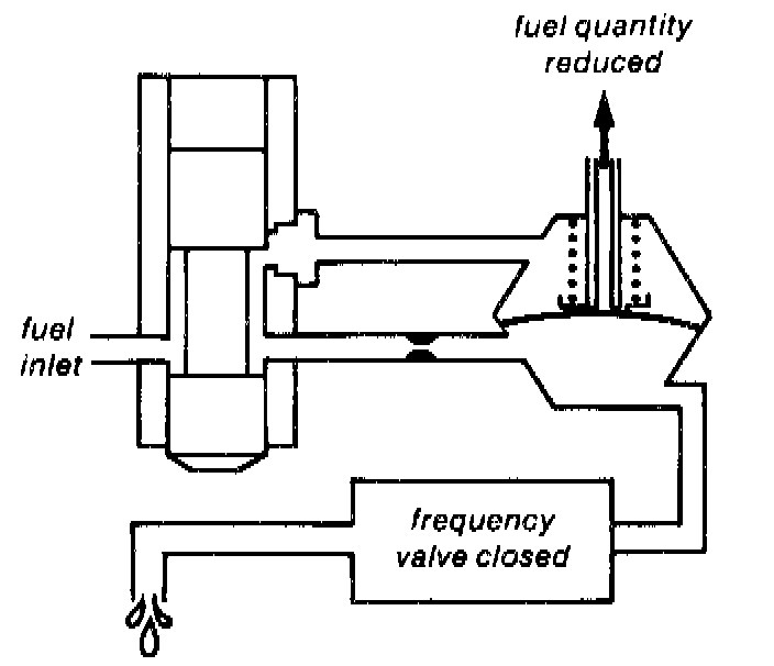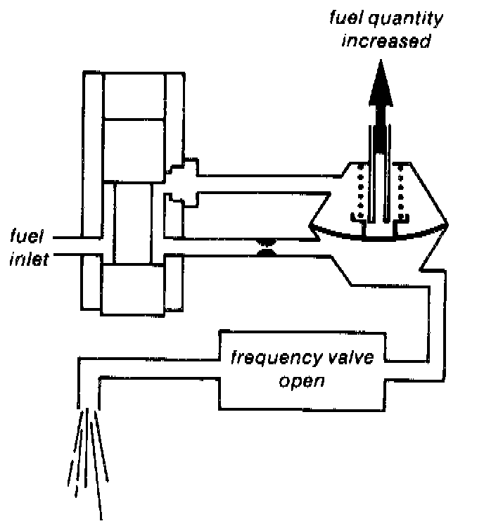 As long as this pressure difference was held constant, the amount of fuel flowing was determined only by the height of the control plunger. If the pressure in the lower chamber is varied, the fuel quantity to the injectors will change.