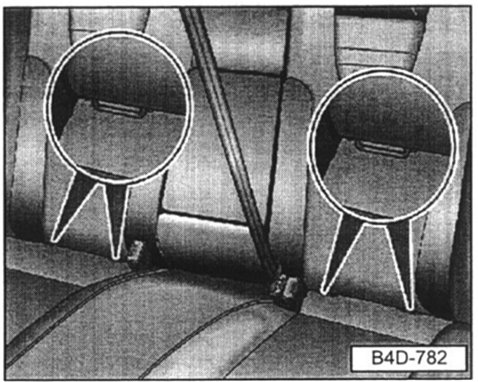- Illustration shows seat back with tether anchor arrangement for Avant and Allroad Quattro