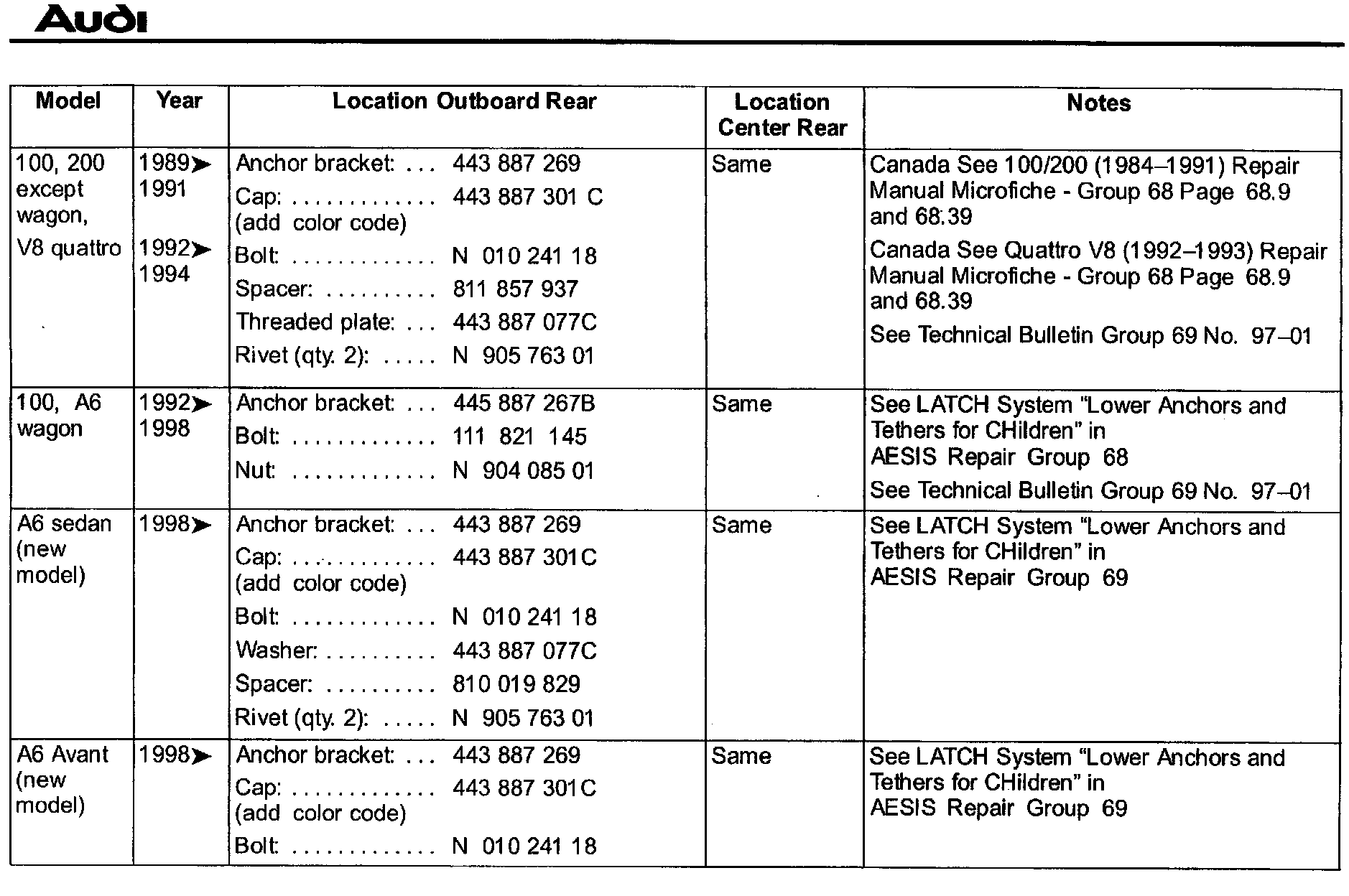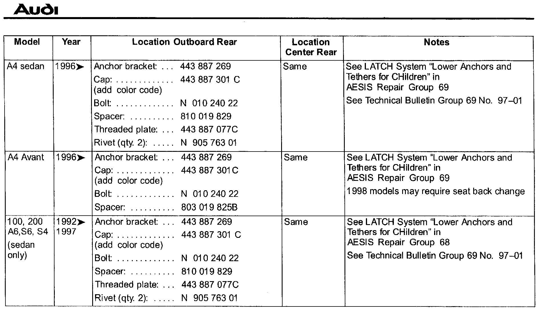 Some A4 Avant models may require a seat back change for tether anchor installation.