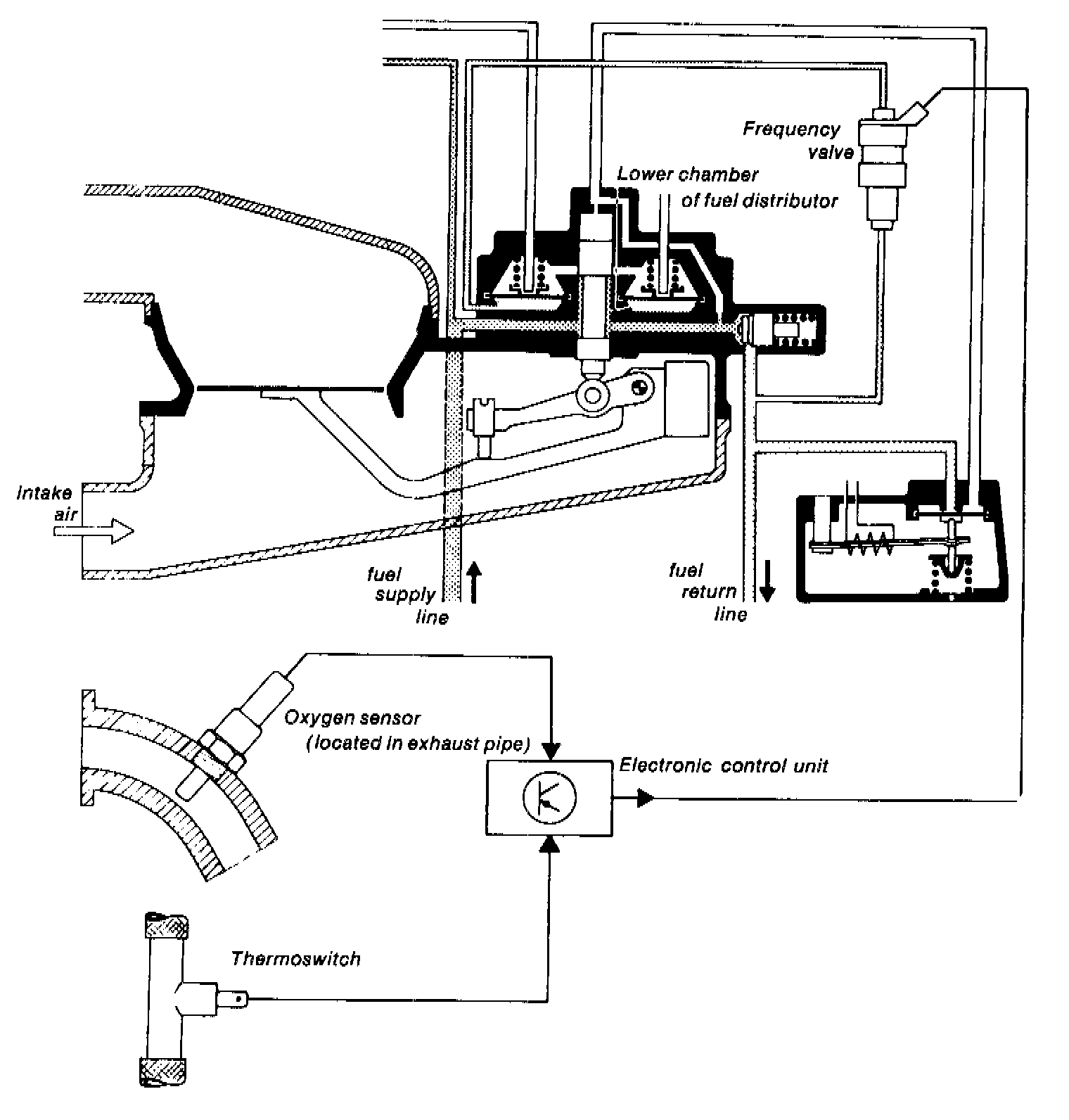 With the oxygen sensor system, the air/fuel ratio can be kept within the precise range required for efficient operation of the 3 way catalyst.